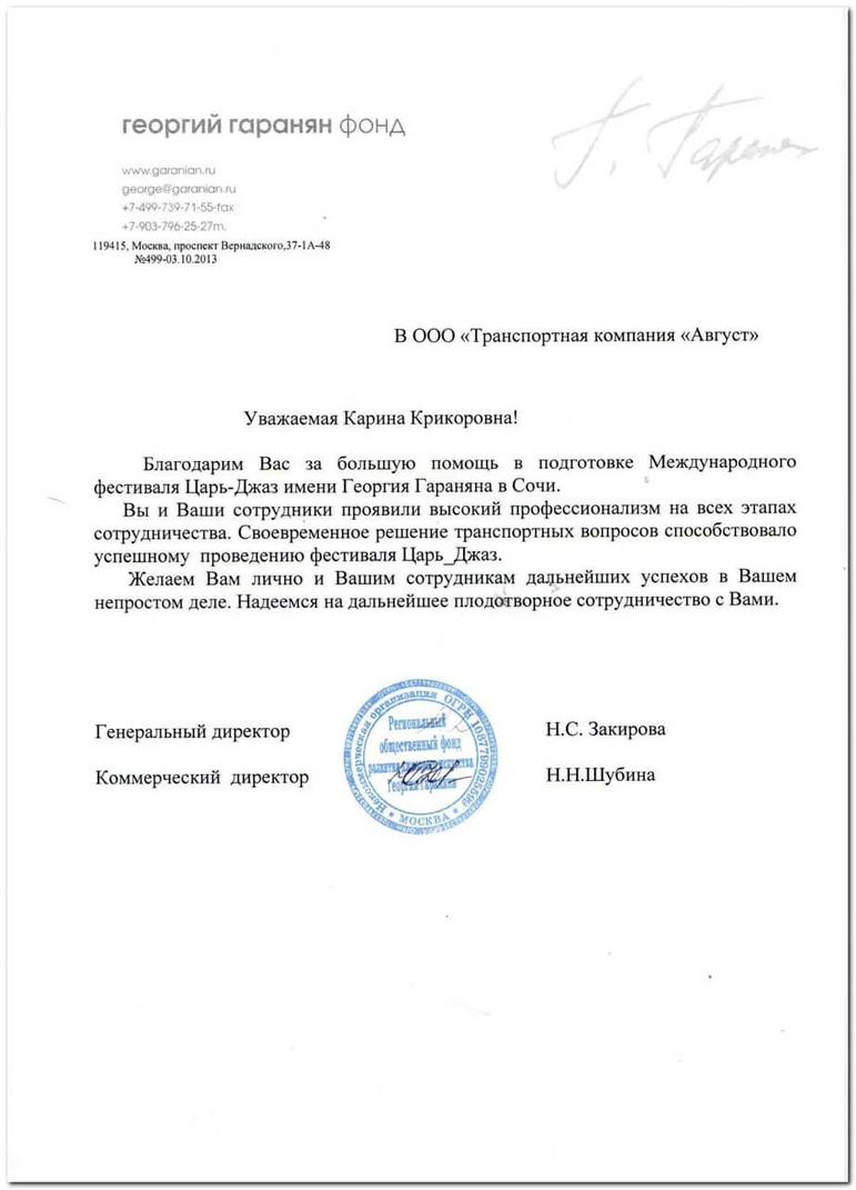 Приветствую Вас от имени команды ТК "Август".